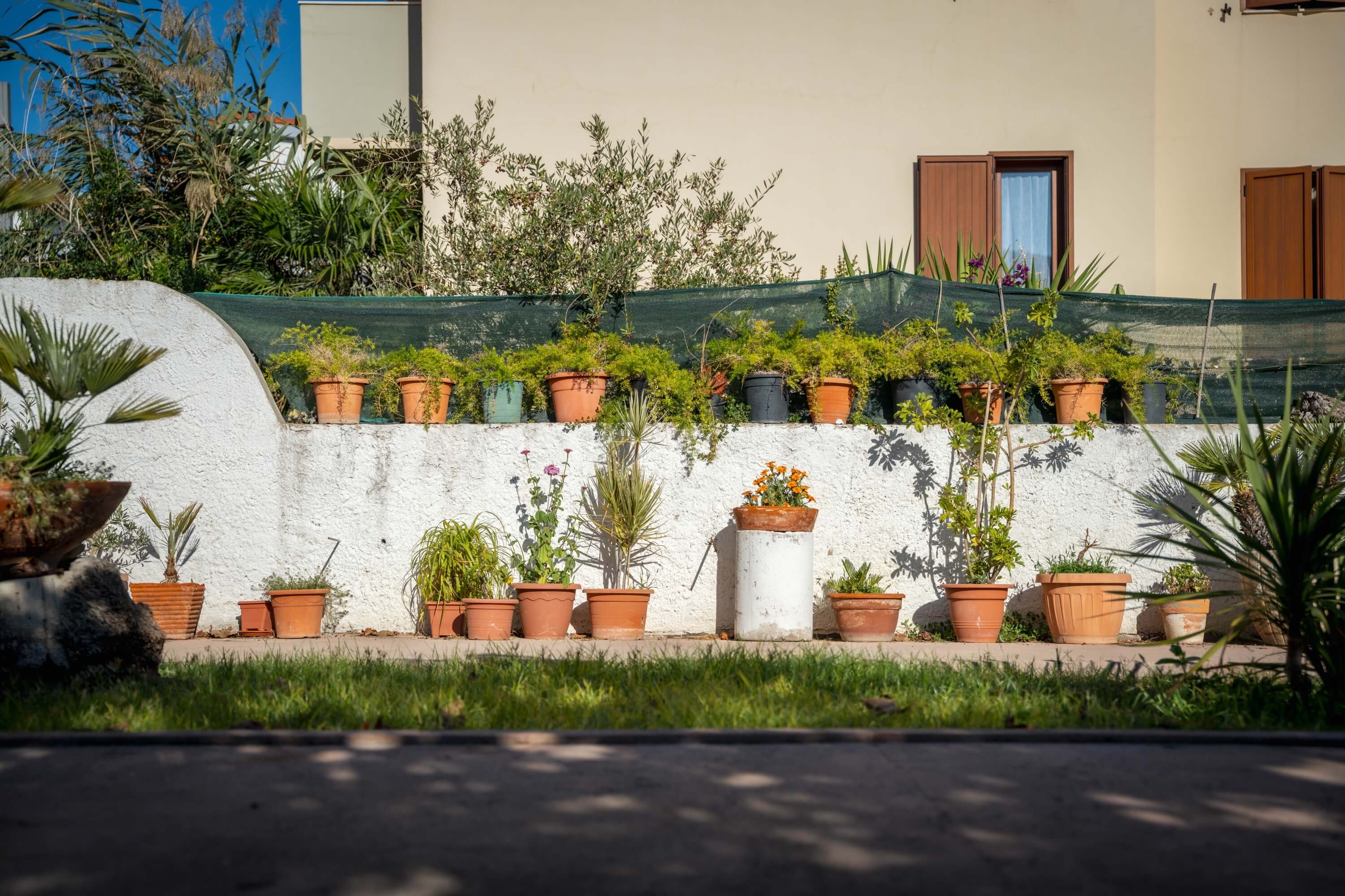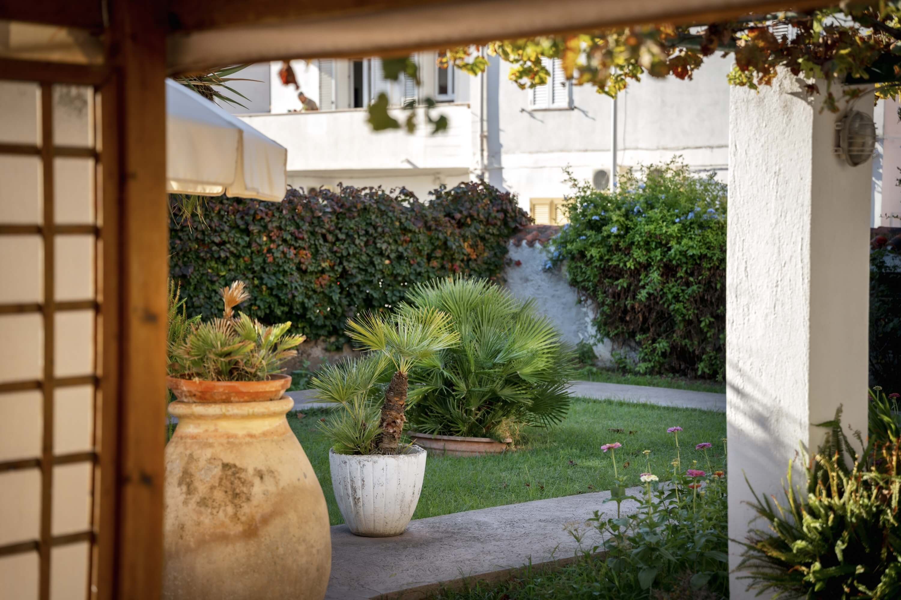 Il progetto paesaggistico del giardino, curato dall’architetto Bruno Concas, ha dato nuova forma a questo spazio privilegiando essenze e colori della macchia mediterranea, piante aromatiche, tonalità morbide, materiali naturali.
